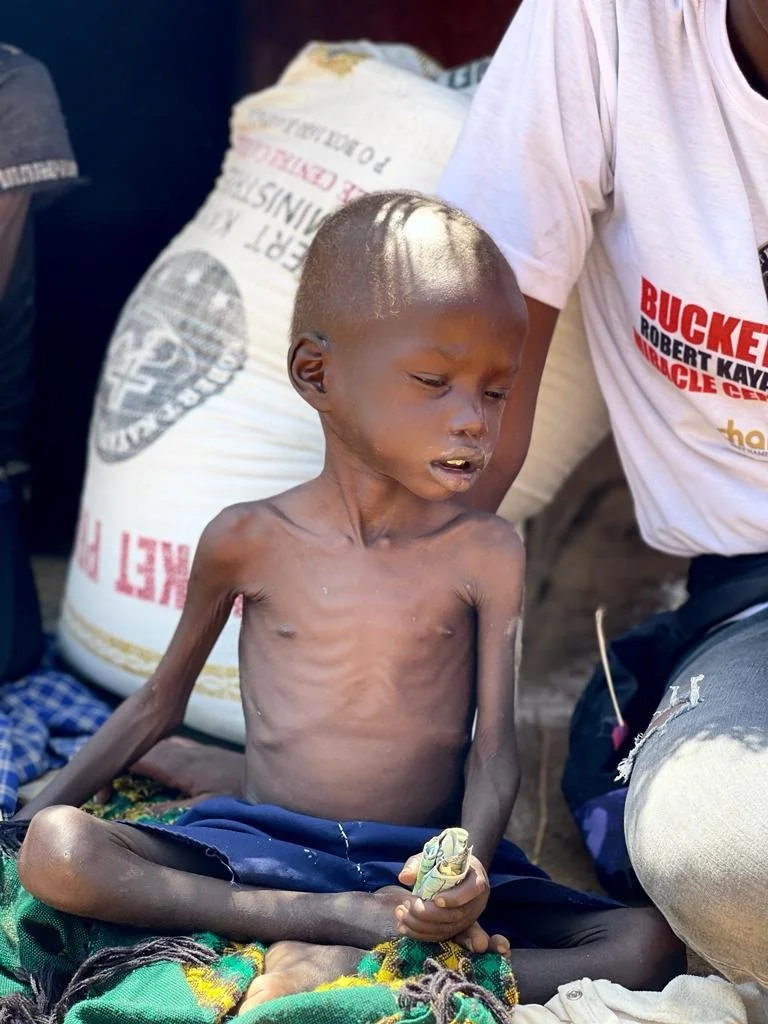 Before: In Karamoja, there lived a young boy named Mark, whose days were marked by the harsh grip of malnutrition. After losing his parents, he was left in the care of his grandmother. His ribs protruded against his fragile skin, and his strength faded with each passing day. Hope seemed distant until Robert Kayanja Ministries arrived with the nourishing gift of the Elijah’s Meal.